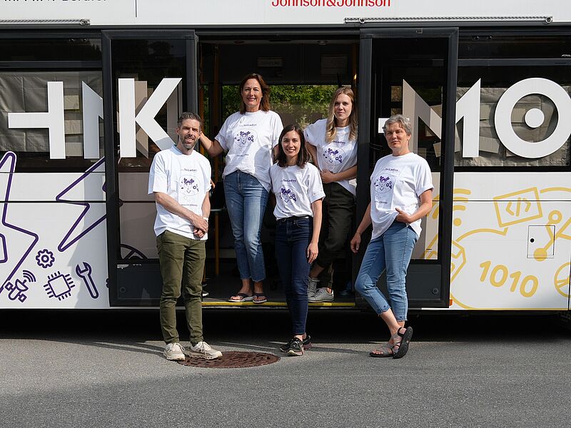 Organisationsteam des Swiss Tec Ladies Camps 2025 in Chur (v. l. n. r.): Michael Graf (Gymnasiallehrer, Bündner Kantonsschule Chur), Sandra Weidmann (Programm-Managerin Nachwuchsförderung, SATW), Edith Schnapper (Leiterin Nachwuchsförderung, SATW), Nadja Reisacher (Standortleiterin St. Gallen, Smartfeld) und Belinda Weidmann (Verantwortliche Tec Days an Mittelschulen und educamint.ch, SATW). © SATW