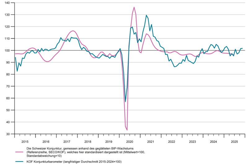 Das KOF Konjunkturbarometer steigt im November leicht auf 101.7 Punkte. Während Nachfrageindikatoren zulegen, bleiben Teile des Produzierenden Gewerbes unter Druck. Für einzelne MEM-relevante Branchen zeigt sich ein gemischtes Bild.